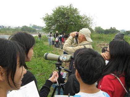 桂川の畔では,カワセミやイカルチドリなどの野鳥を観察することができました。