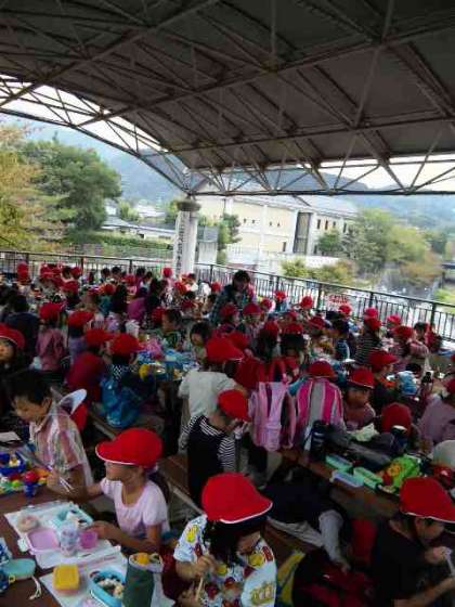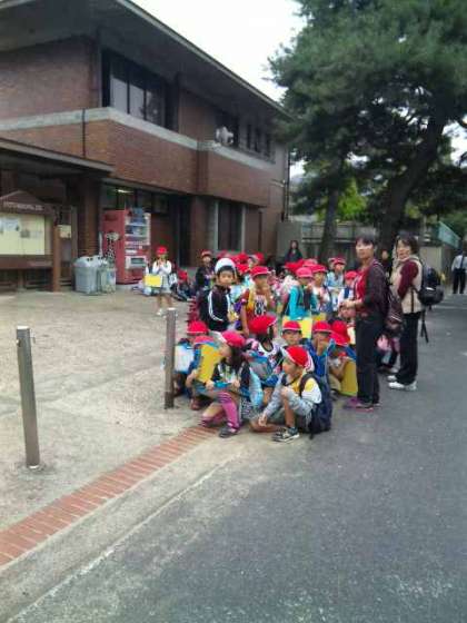 雨が降らないうちにお弁当を食べて,おやつタイムも終わって,自由時間に班ごとで行動してます。その後,雨が降ってきたので,予定より少し早く帰ることにしました。