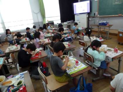 初めての給食を楽しみにしていた1年生です。