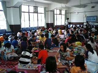 午前中の活動が終了しました。「緊張した」「楽しい」などと話をしながらお弁当を食べています。