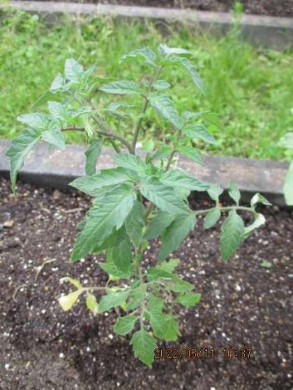 さくらんぼの畑に夏野菜の苗(トマト・ピーマン・バジル)とサツマイモのツルを植えました。