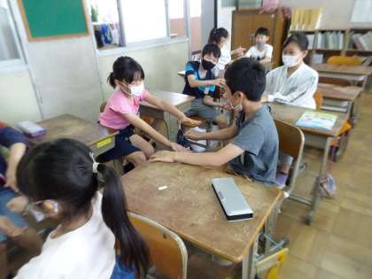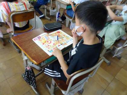 いろいろなゲームをしながら,数の言い方に慣れていきました。子どもたちは,ゲームをすごく楽しんでいましたが,その中で,「8と18は,言い方が似てるな」や「10より大きい数には,『ティーン』がつくな」と気づきもあったようです。