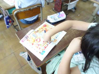 子どもたちは,エミリー先生との学習を楽しみに待っていました。今日は,数の学習をしました。「1〜10」までの言い方は,すでに知っていた子どもたちも「11〜20」になると,少し難しかったようです。