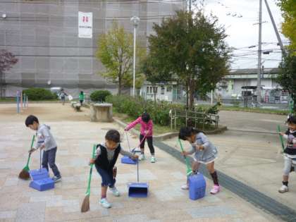 専用の道具を使って落ち葉を集めたり,ゴミを拾ったりしました。