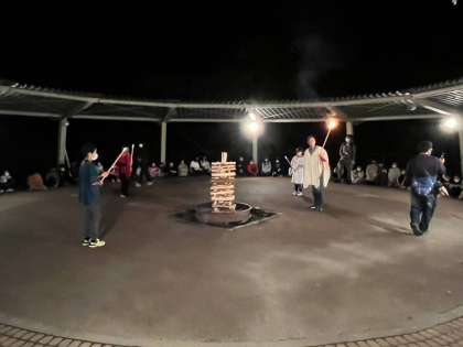「燃えろよ燃えろ」の歌声とともにキャンプファイヤーが始まりました。