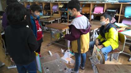 おきゃくさんのときは 1年生に 行きたいところを聞いたりしながら