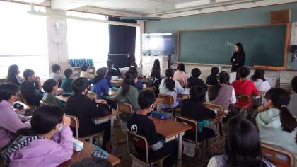 英語の学習では,エミリー先生が過ごした春休みの暮らしについて話してくれました。