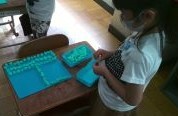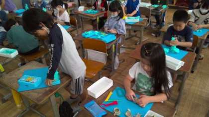 作った作品を,友達同士で嬉しそうに見せ合っていました。