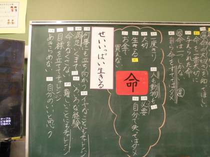 5年生と同じ11歳で命を落とした女の子の生き方を通して,自分の限りある命を『せいいっぱい生きる』ということについてみんなで考えを出し合いました。