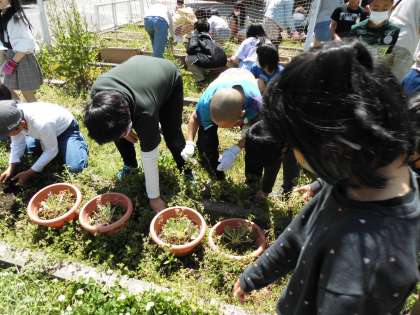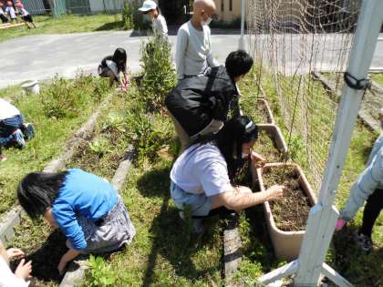 理科の学習で使う畑の草ぬきを中間休みにお願いしたところ,自主的にたくさんの5年生がお手伝いに行ってくれました。