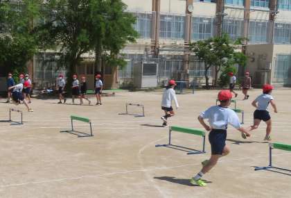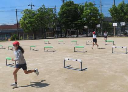 3歩のリズムで跳ぶための足の動かし方に苦戦しながらも、一生懸命練習しています。