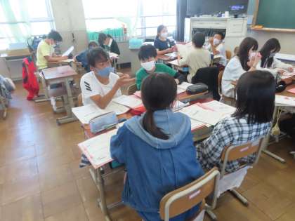 子どもたちは、「手伝いをする」「早寝早起きをする」「家族と過ごす時間を増やす」など、自分にできる実践の成果を友達に熱心に伝えていました。