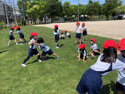今日の体育は、2クラス合同ですもうあそびをしました。