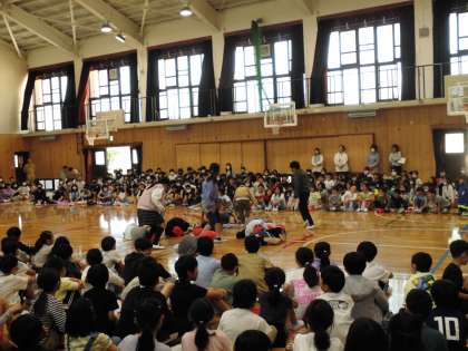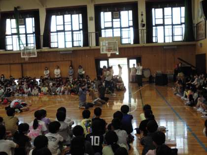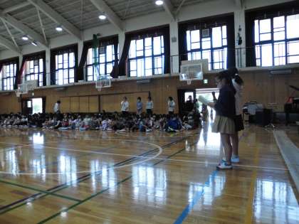 1年生を迎える会が全校生集まって体育館で行われました。