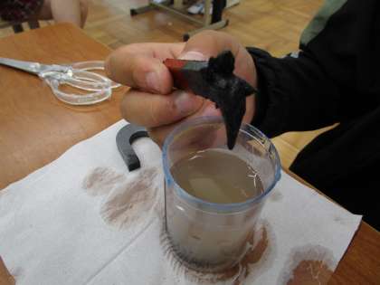 「砂鉄を水につけるても磁石につくのか」という実験を行い、
