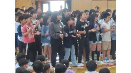 最後は、「カントリーロード」の曲を日本語の歌詞・リコーダー・英語の歌詞で、1年生に届けました。