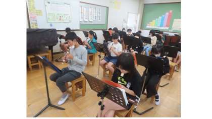 リコーダーで、「ギャラクシー 〜銀河を超えて〜」に取り組んでいます。宇宙の壮大さを感じられるように工夫しながら吹いています。