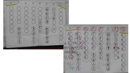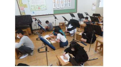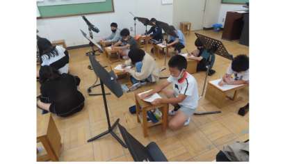 歌詞の聞き取りにチャンレジ!! 子どもたちは、曲の一字一字に注目し、集中して聞き取っていました。