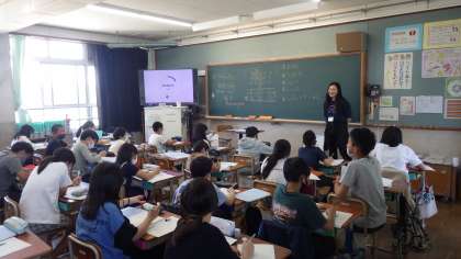 今日はエミリー先生に来ていただき,ローマ字の学習とテストに向けて調べ学習をしました。