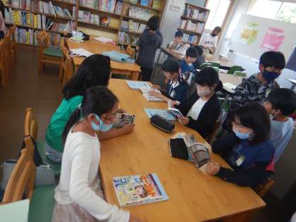 みんな休み時間に図書館へ!本を借りられてみんな楽しそうに過ごしていました。