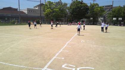 体育の学習で取り組んできた「遠投」の投げ方を意識しながらボールを投げ、ソフトボール投げの記録測定を行いました。