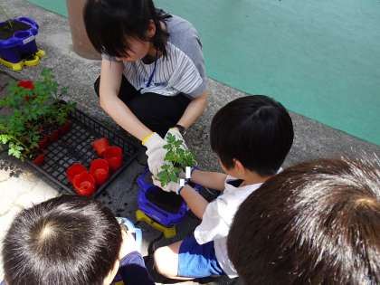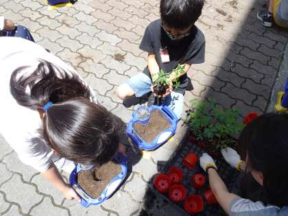 根っこを傷めないように、そっと手にのせて鉢に運び、優しく土をかぶせました。