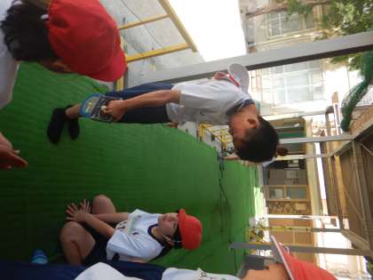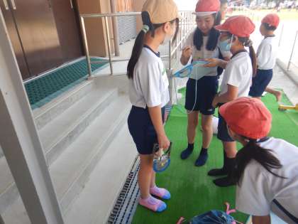 握力では、みんな力の限り精一杯に握力計を握り計測しました。