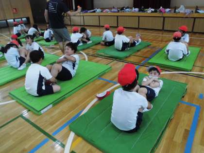 体力テストの上体起こし中です。
