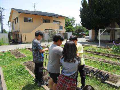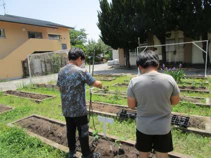 さくらんぼ学級 生活単元学習 きゅうりの支柱を立てました