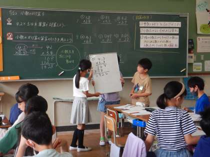 算数では、小数のかけ算の筆算の学習に入っています。