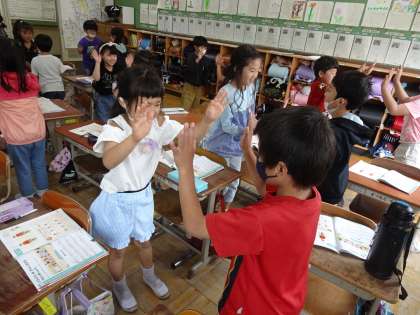 音楽の学習で、2拍子の曲を歌ったり、リズムを打ったりしました。