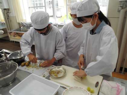 子どもたちは学校で初めて包丁を扱いましたが、安全に使えていました。