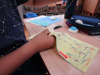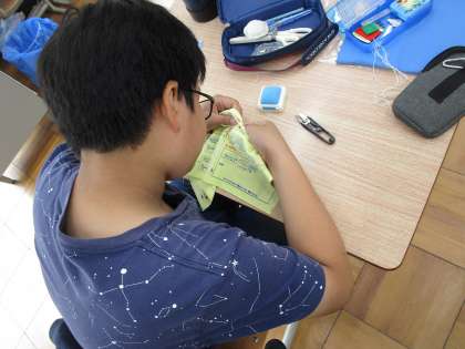 練習布の「おたまじゃくしを作ろう」という箇所を使いました。初めてとは思えないぐらい、とても上手にできました。