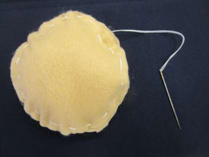 綿が出てこないように細かく波縫いすることをめあてにしていました。