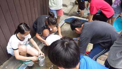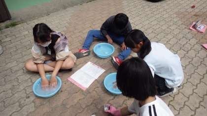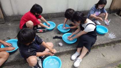 今日は靴下をもって,実際に洗濯をしました。