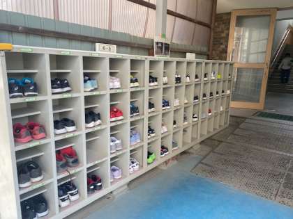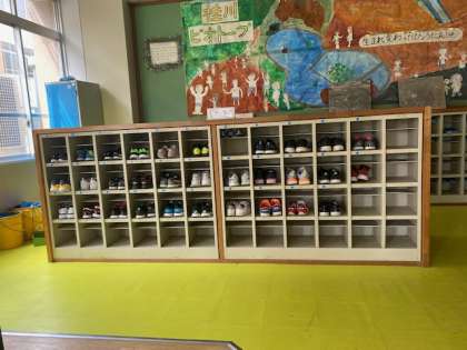 高学年の下駄箱前で、整然と揃っている外靴に関心しHPにアップしました。