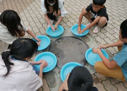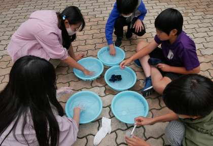 班で協力しながら靴下を洗濯しました。水が汚れていくことに気づいたり,洗濯機の良さに改めて気づいたりする姿が見られました。