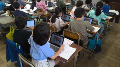 タブレットを活用しながら、自分たちで旋律づくりをしました。
