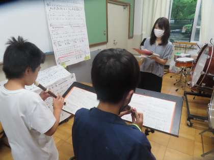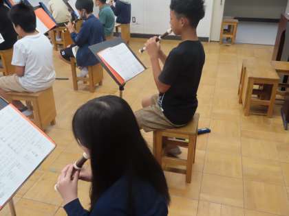 これまで練習してきたリコーダー曲「ギャラクシー 〜銀河を越えて〜」のテストを行いました。今回は、2人2組でチャレンジ。テストの前には、最後の練習を一生懸命取り組んでいました。
