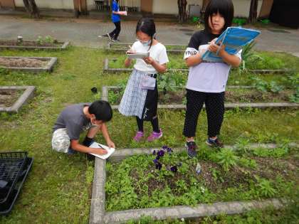 今日は、外に出て、気が付いたことや感じたことなど材料を集めに行きました。