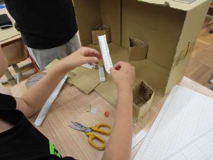 ゴールが分かれるようにしたり、ビー玉を置く場所を作ったりするなど、自分なりの工夫を取り入れていました。完成が楽しみです。
