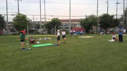 跳ぶ人、記録をとる人、合図を送る人、棒をセットする人・・・