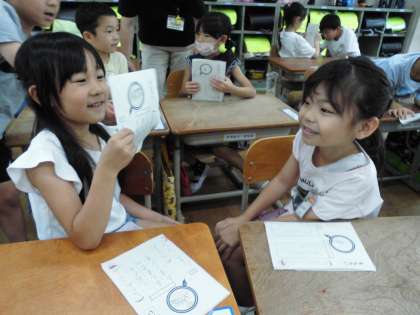 自分たちが作ったクイズを友達と紹介し合いました。ペアで出し合い、クイズの面白いところを見つけたり問いと答えのクイズになっているかを確かめたりしました。自分が作ったクイズを喜んで紹介する姿や友達のクイズに身を乗り出して聞く姿が見られました。クイズ大会が楽しかったようで、終わりの会のにこにこみつけでも挙げられていました。