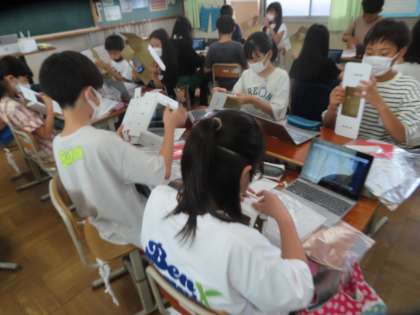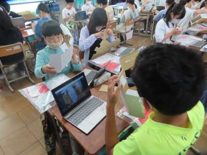 図画工作科では、クランクの動きをいかした作品づくり「くるくるクランク」の学習をスタートしています。