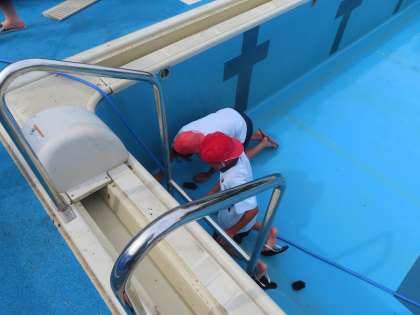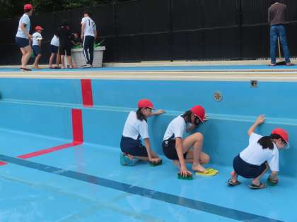 昨年のプール後から、たまっていた壁の汚れまで、丁寧に磨いてくれました。身体が濡れるのも気にせず、懸命に頑張る姿はとても輝いていました。