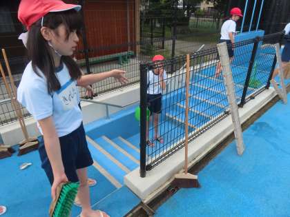 シャワーの場所や腰洗い槽まで、きれいにしてくれました。子どもたちのおかげで、学校のみんなが気持ちよく水泳学習に取り組めます。さすが6年生です!!