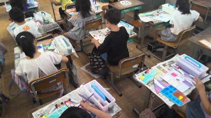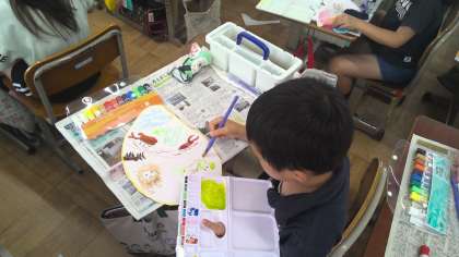 クレパスや絵の具の使い方を工夫しながらできました。