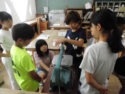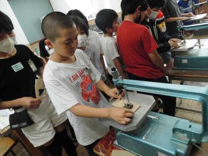 糸のこの刃のつけ方,そして安全な使い方をまずは知り,後半はグループごとに実際に刃をつけて切ってみました。