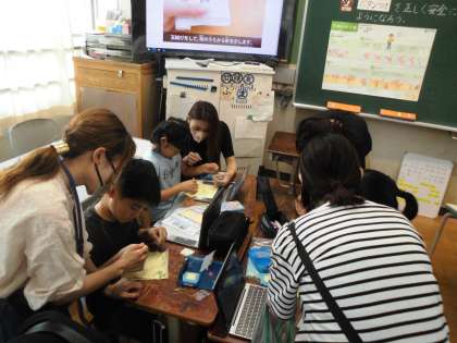 玉結びと玉どめをおこなっていますが,まだまだ一人ではできない子もたくさんいたので,保護者の方の力も借りながらみんなで頑張りました。