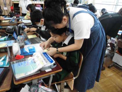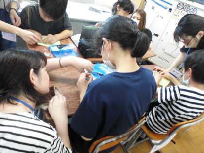 難しいボタン付けも保護者の方のサポートのおかげで何とか1つはつけることができていました。